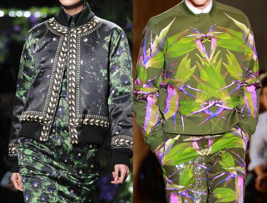 当然了,要说起Givenchy最初的印象,还是那些张扬又规则的3D数码印花。2011秋冬系列的鸢尾花,还有2012春夏系列的天堂鸟,当年可谓是风靡一时。在2014春夏男装系列中,机械零件印花也成了最大的亮点。于是乎,规则的拼接数码印花成了Givenchy最出名的标志之一。