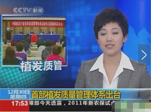 央视新闻频道一美女主播,在播发一条关于植发行业建立首个质量管理体系新闻的时候,昏昏欲睡,哈欠连天,并不时出现闭眼的画面。